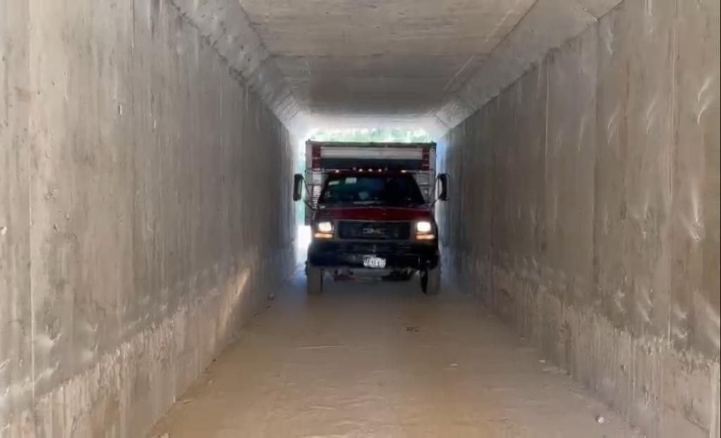 En el recorrido se pudo constatar la existencia de dos tipos de pasos a desnivel del Tren Maya, tales como el de pasos de fauna, con una dimensión de 3 x 2.5 metros, y los pasos de vehículos, con un tamaño de 3 x 3 metros.